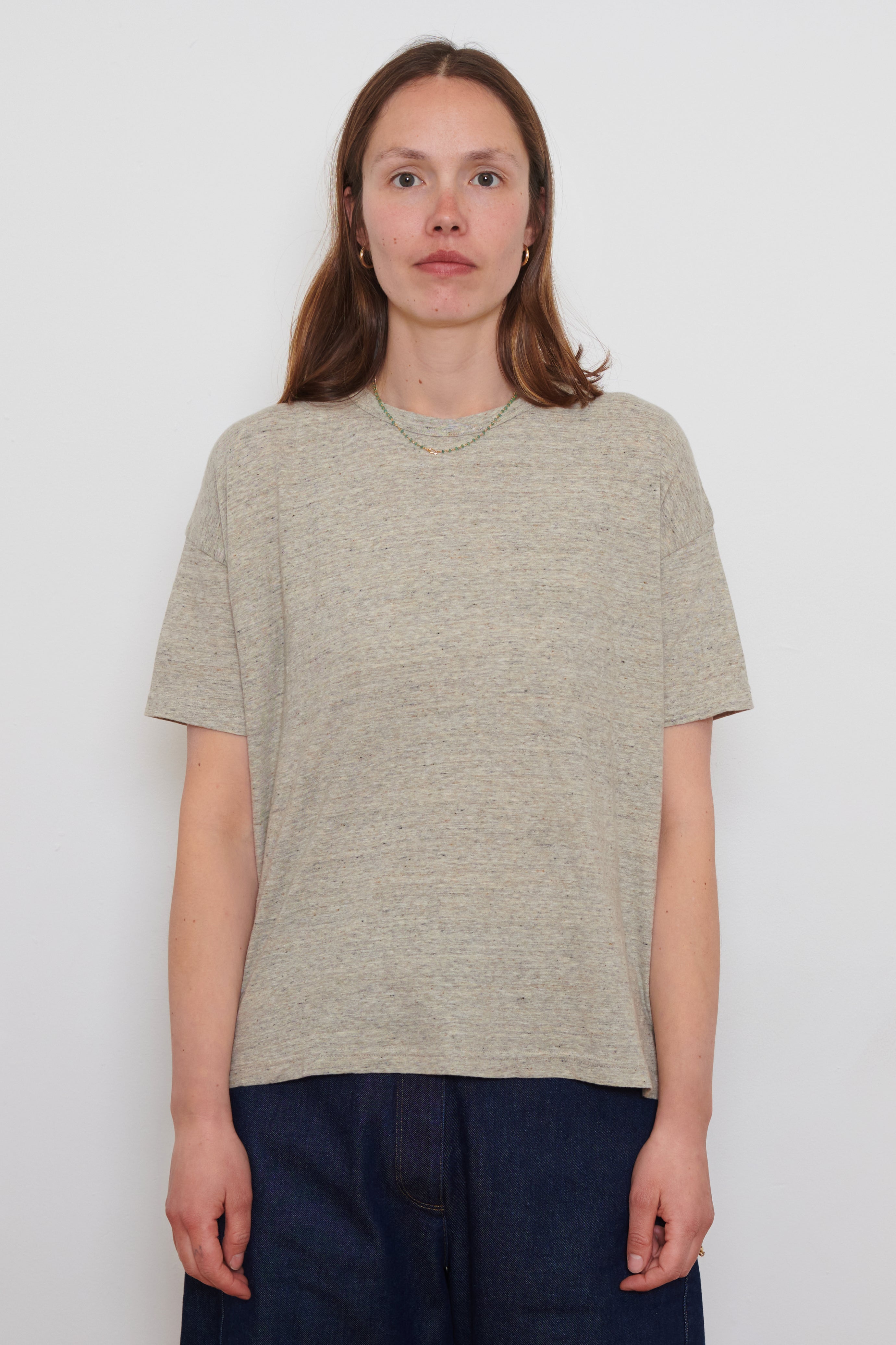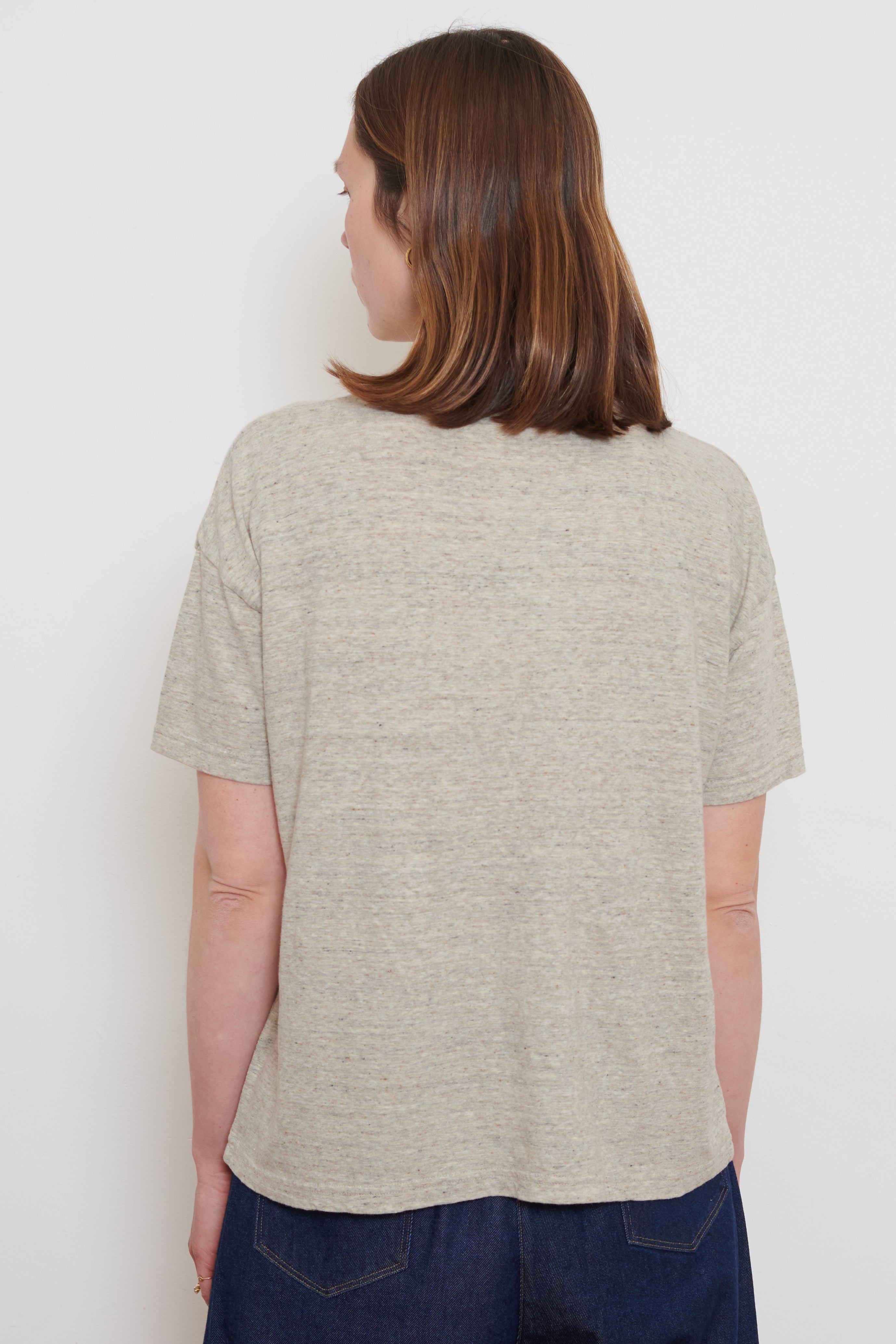 Short-sleeved, relaxed fit t-shirt in a 100% cotton knit, which is in a flecked beige colour.