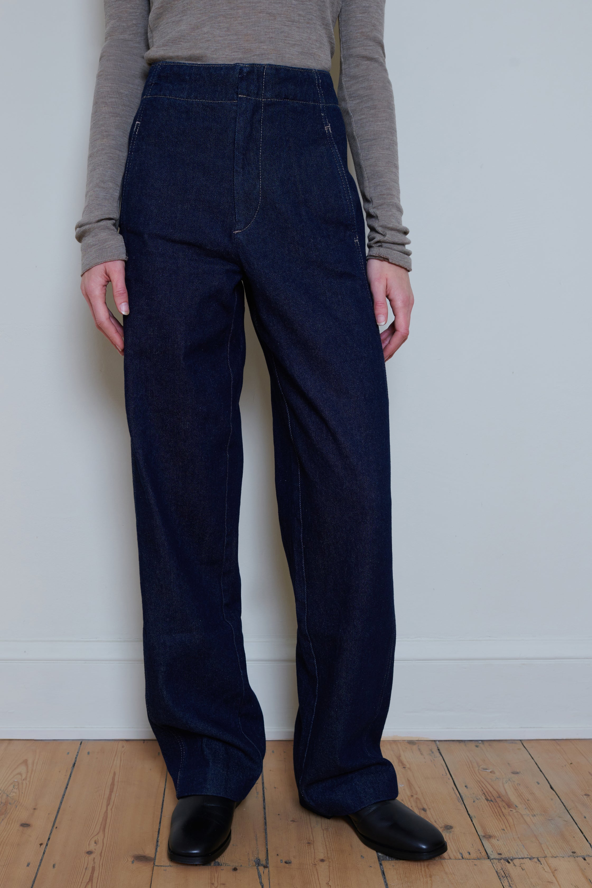 BLAIR is a wide-leg pair of jeans with a balloon silhouette. The raw, thick, and durable denim fabric provides structure and enhances its rounded volume. Its extra-long leg is designed to break over the shoe or be rolled up at the ankle.